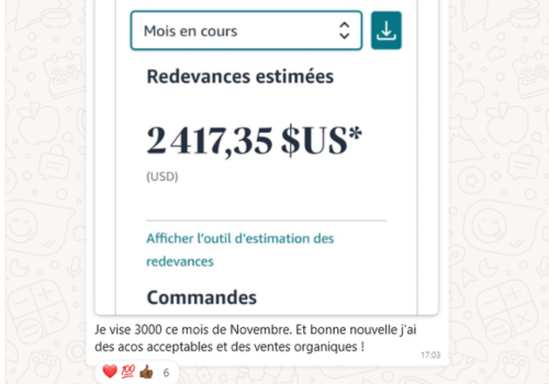 Chaque semaine, des élèves me partagent leurs victoires : premières ventes, revenus réguliers, livres classés dans le top 100…
